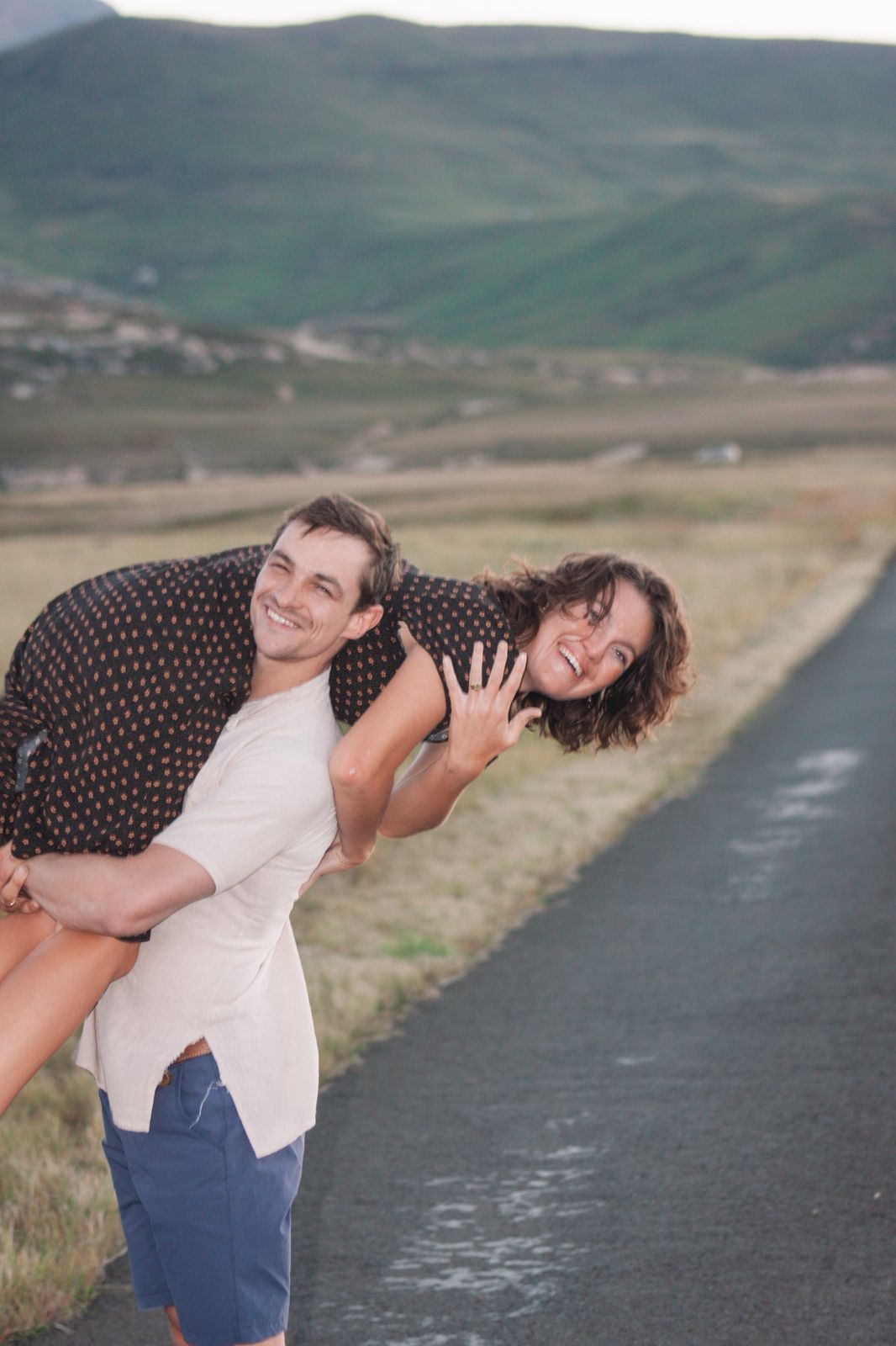 Hulle was met vakansie in Semonkong, Lesotho toe die groot oomblik gebeur het. “Die Saterdag het ons toe gaan piekniek hou by Maletsunyane-waterval. Na die piekniek het ons op ’n krans gaan sit. Hy het my regop getrek en toe sy knie gebuig en my gevra. Dit was ’n oomblik wat ek nooit sal vergeet nie. Dit was ’n verrassing, al het ek geweet die tyd begin naderkom.”