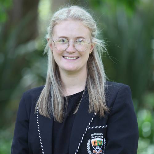 Juffrou Caitlin Olivier gee Wiskunde en Natuurwetenskappe. Sy glo elke leerder kan hul volle potensiaal bereik. Sy is ook betrokke by hokkie, debat en JFFJ – ja, sy doen dit alles!