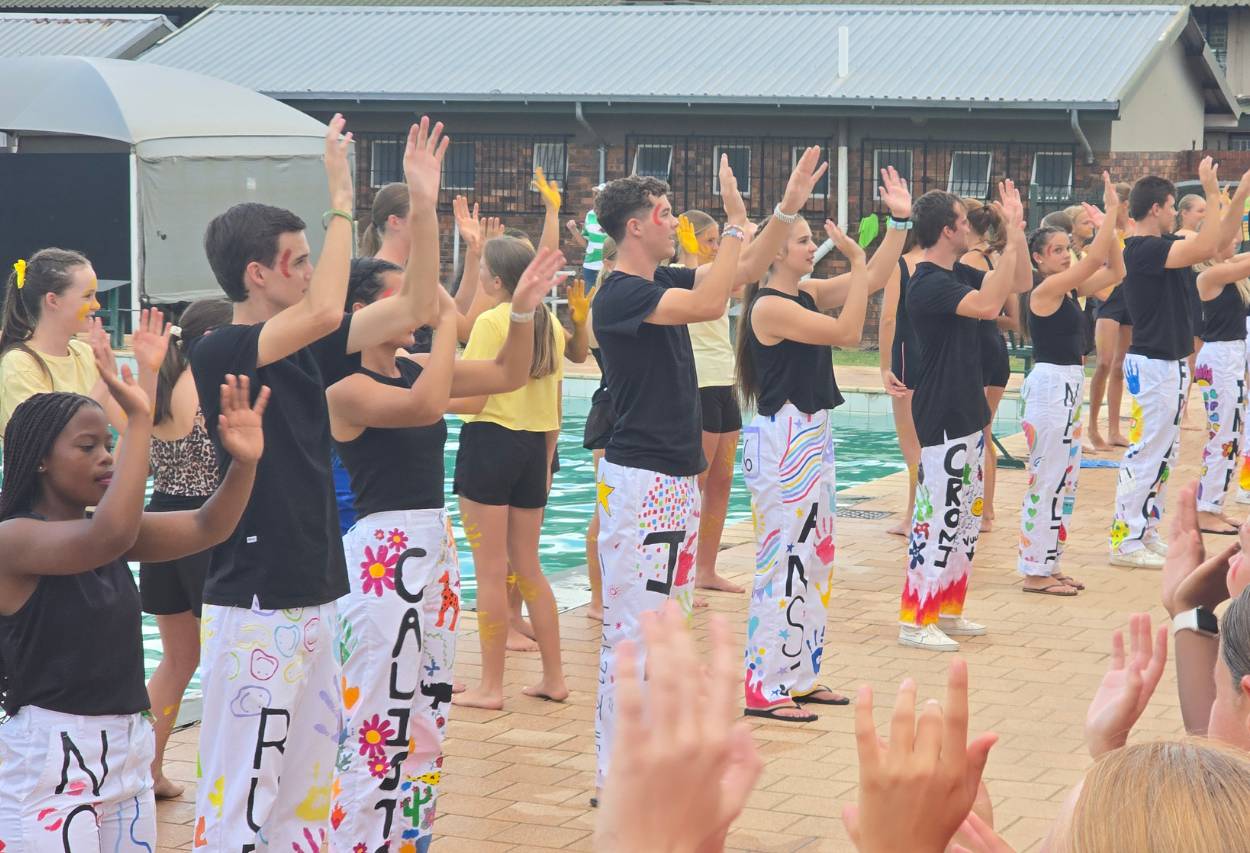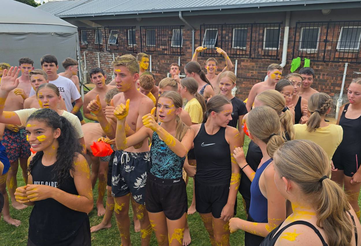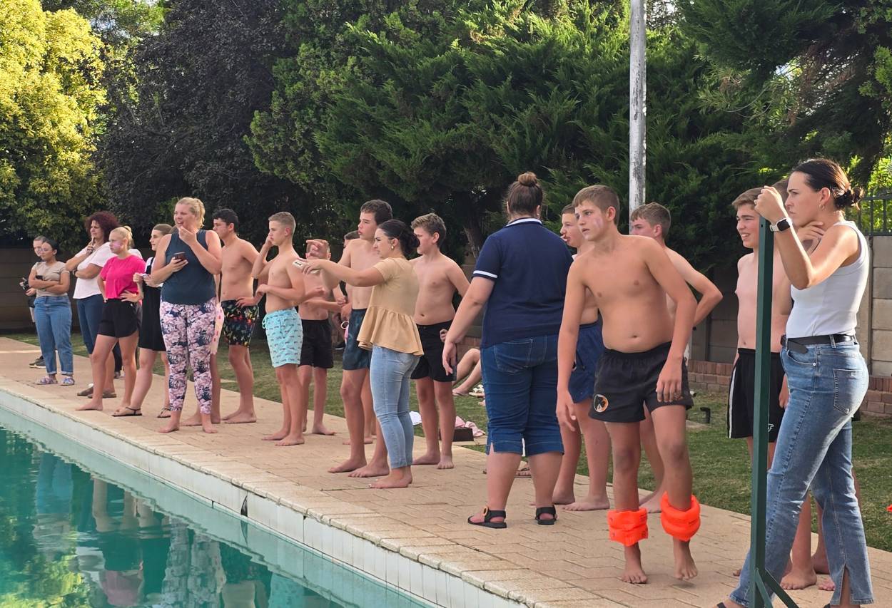 Die atmosfeer langs die swembad was elektries. Van die eerste item af het leerders met groot entoesiasme deelgeneem en hul beste gegee. Klasse het mekaar luidkeels aangemoedig en ‘n vreugdevolle gejuig het deur die lug weerklink. Die gees van samewerking en trots in die skool was duidelik sigbaar, en elke span het alles ingesit om hul klas trots te maak.