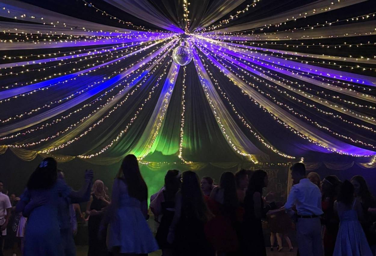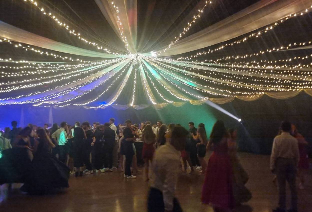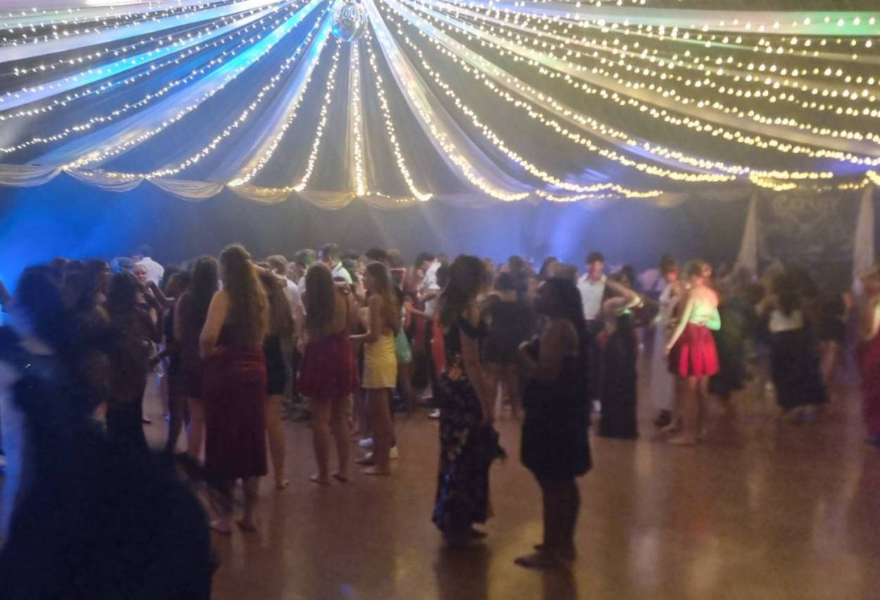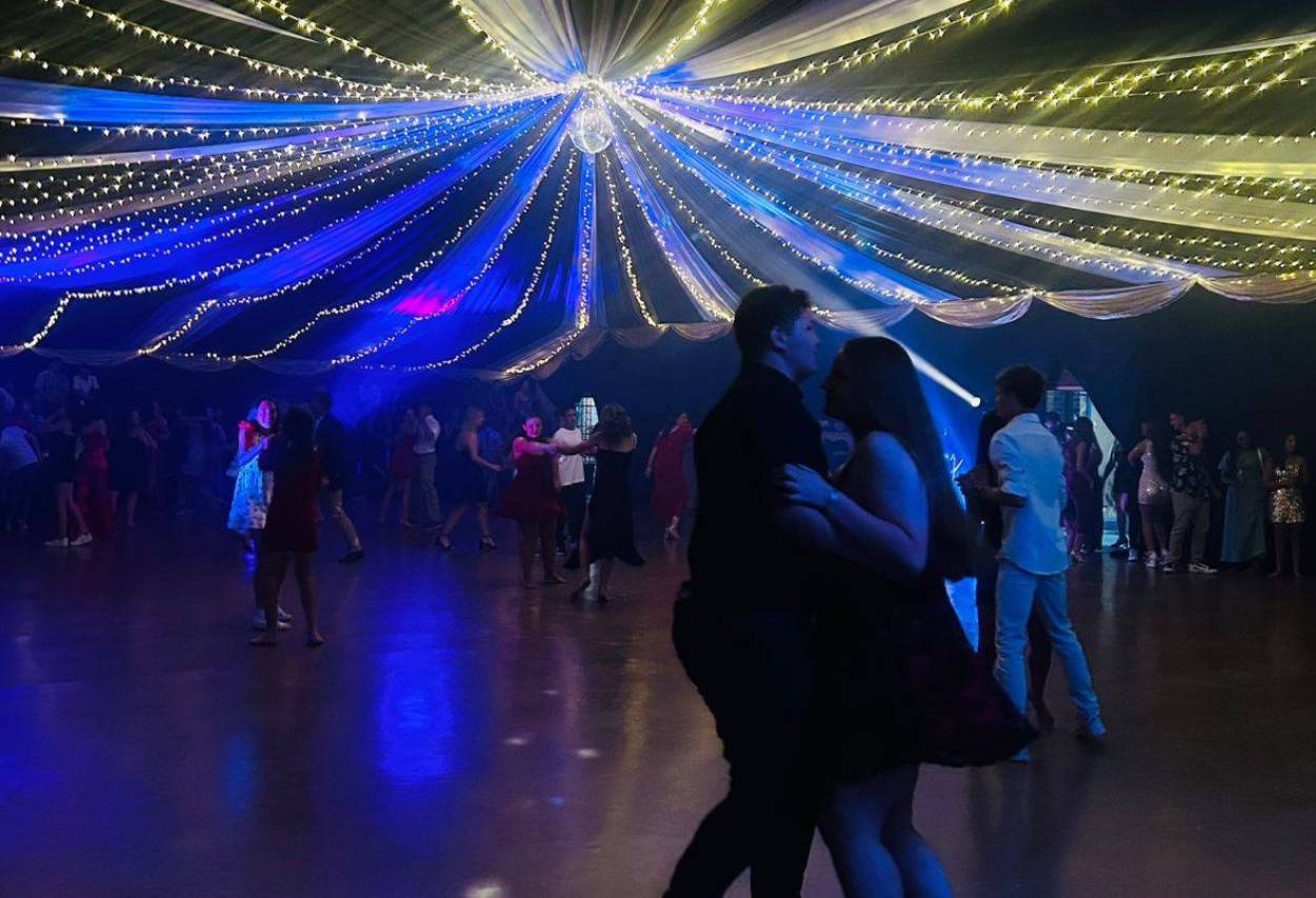 Die saal was gevul met leerders wat die dansvloer oorgeneem het en kringe wat gevorm het